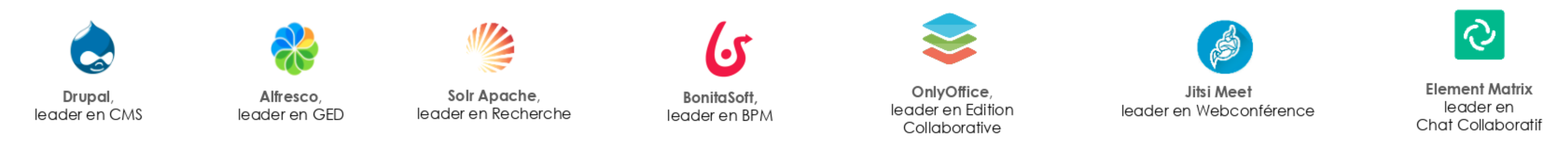 | Open source & auditabilitéTransparence du code | 100 % open source. Stack Alfresco, Bonita, Onlyoffice, Element/Matrix, OpenXChange. Code auditable par les clients et partenaires. | Propriétaire. Code source fermé, aucun audit possible par les organisations clientes. | Propriétaire. Client partiellement open source (WebRTC), serveurs entièrement fermés. | Propriétaire. Infrastructure et code serveur entièrement fermés. |